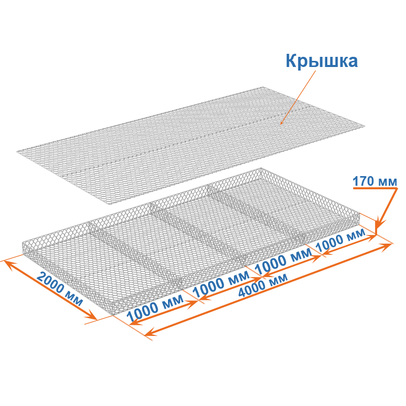Матрасы Рено 4x2x0,17 (ячейка 60х80, проволока 2,2 мм, покрытие Цинк) применяются для защиты от эрозии.