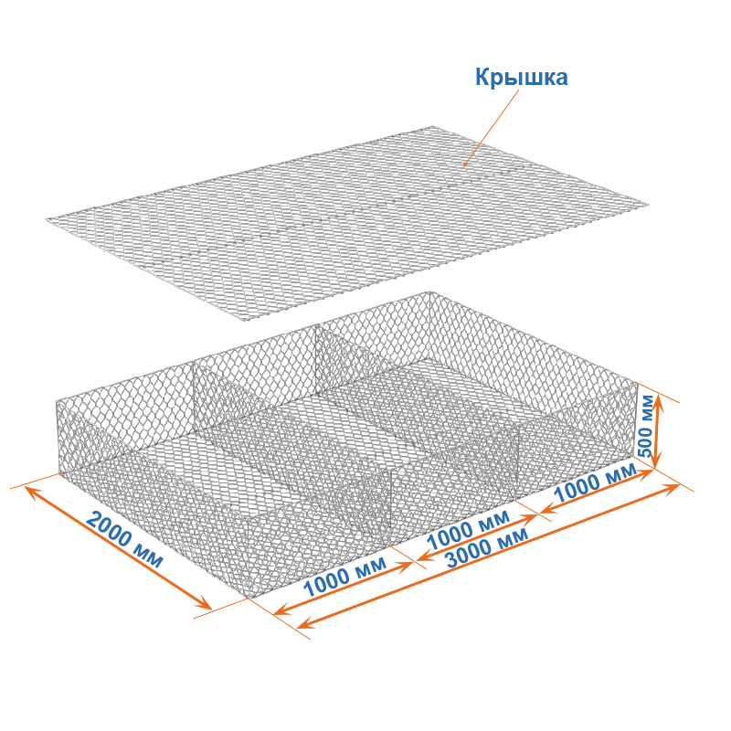 Матрасы Рено 3х2х0,5 (ячейка 60х80, проволока 2,2 мм, покрытие Цинк) применяются для защиты от эрозии.