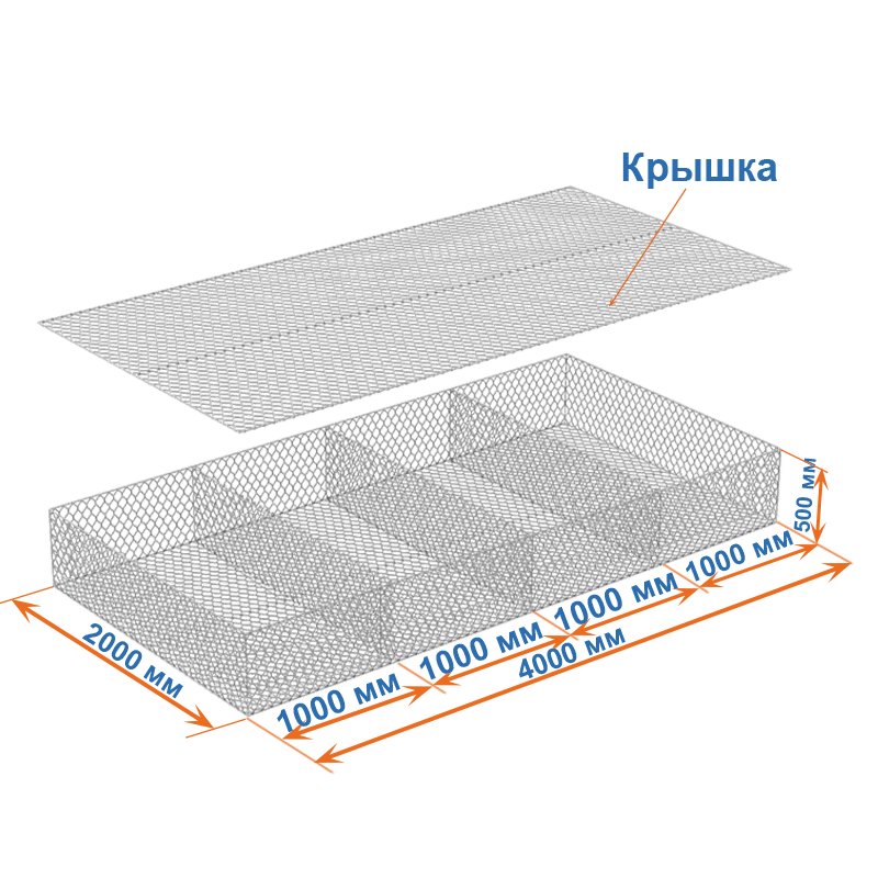 Матрасы Рено 4х2х0,5 (ячейка 60х80, проволока 2,2 мм, покрытие Цинк) применяются для защиты от эрозии.