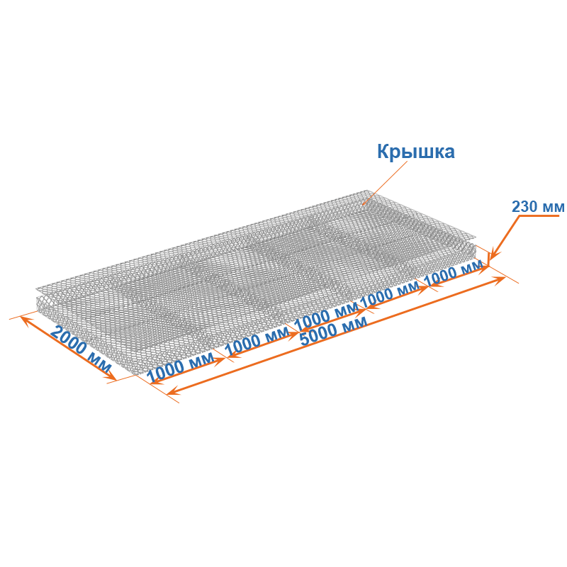 Матрасы Рено 5x2x0,23 — плоские габионные секции из сетки двойного кручения с ячейкой 80х100, проволокой 2,7 мм и покрытием Цинк.