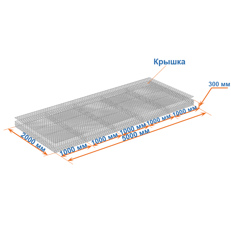 Матрасы Рено 5x2x0,3 — плоские габионные секции из сетки двойного кручения с ячейкой 80х100, проволокой 2,7 мм и покрытием Цинк.